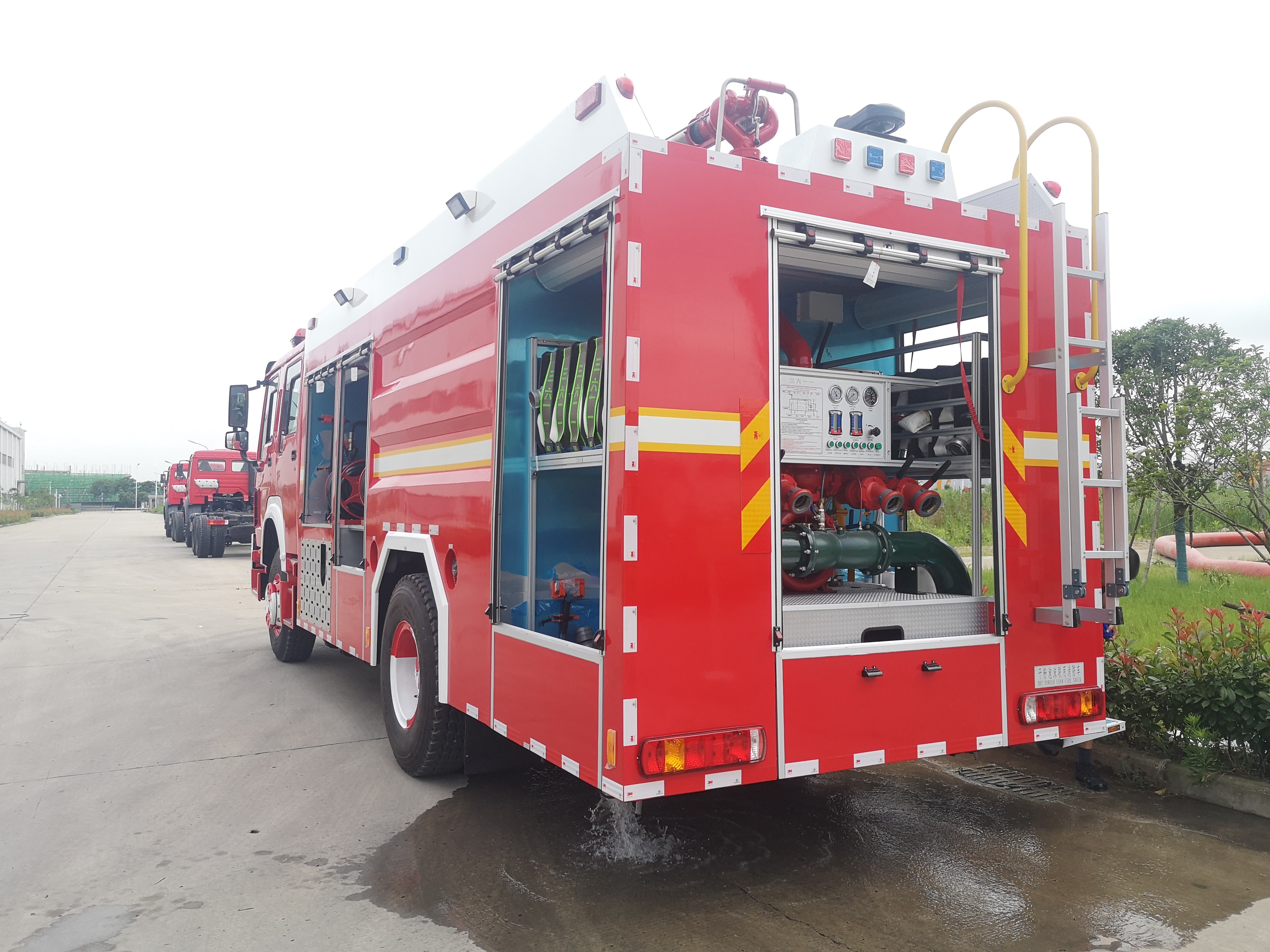 Het voertuig bestaat uit een bemanningskamer, een opbergvak, een tank, een pompkamer, een brandbluspomp, een krachtafnemer, een inlaat- en uitlaatpijp, een brandmonitor, enz.